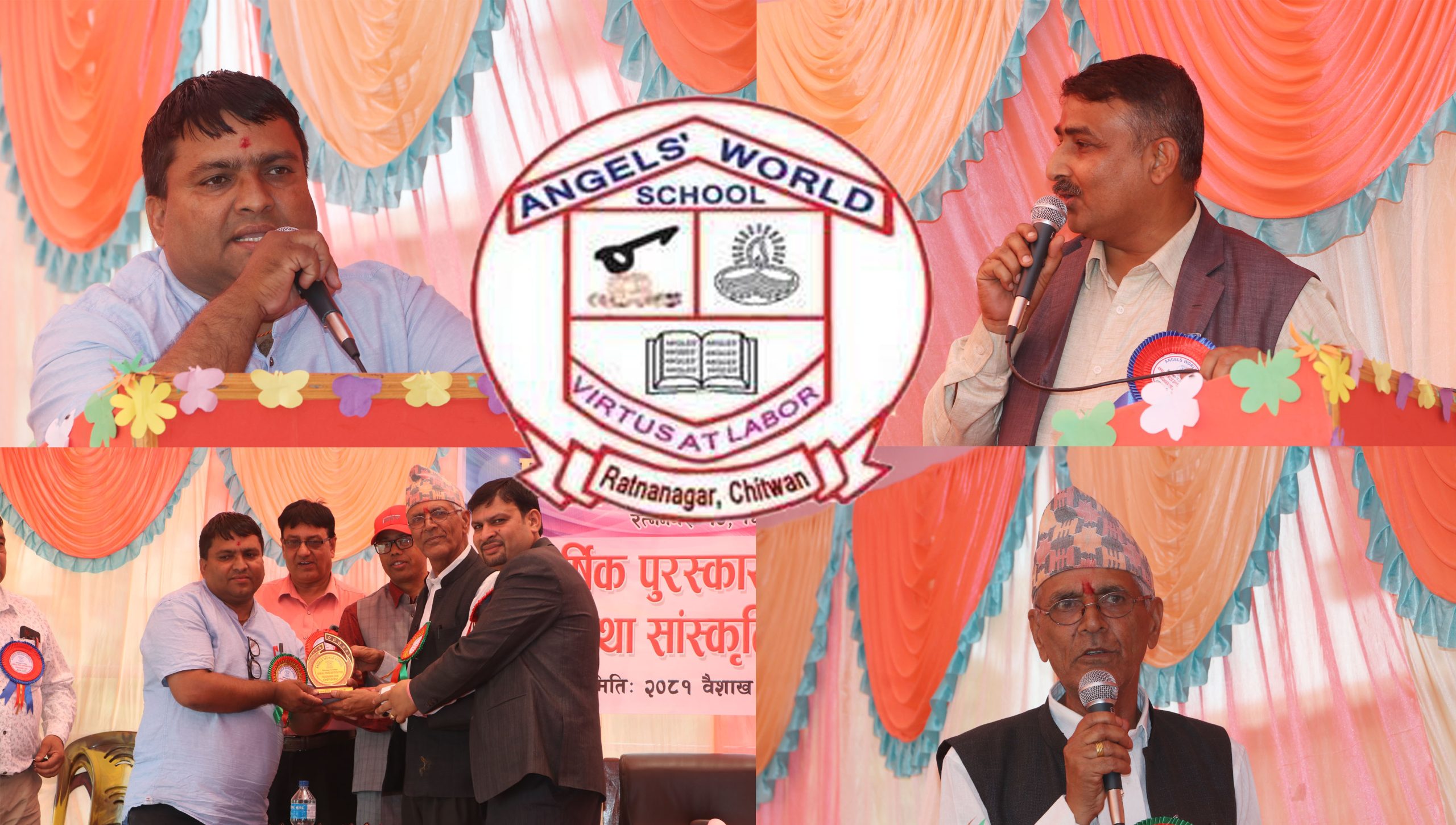 नया वर्ष सुरु भए संगै सुरु भएको नया शैक्षिक सत्रमा यतिबेला विद्यालयहरुमा पठनपाठन सुरुवाती चरणमा रहेको छ । यसै सन्दर्भमा रत्ननगर १० मा रहेको एञ्जल्स वर्ल्ड स्कुलले आज सयौ अभिभावक तथा विद्यार्थीहरुको उपस्थितिमा वार्षिक पुरस्कार वितरण, नया विद्यार्थीहरुलाई स्वागत तथा विविध सांस्कृतिक कार्यक्रम आयोजना गरेको थियो । कार्यक्रम अन्तर्गत ८० जना नया भर्ना भएका विद्यार्थीहरुलाई स्वागत गरिएको छ । सोहि कार्यक्रमको अवसरमा स्कुलका विद्यार्थीहरुले विविध भेषभुषामा सजिएर दर्जन बढी नृत्य प्रस्तुत गरेका थिए ।